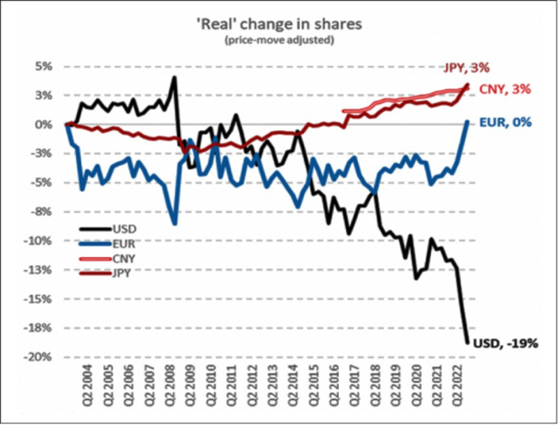 L’utilisation du dollar américain comme arme conduit de plus en plus à un déclin de son rôle en tant que monnaie de réserve.