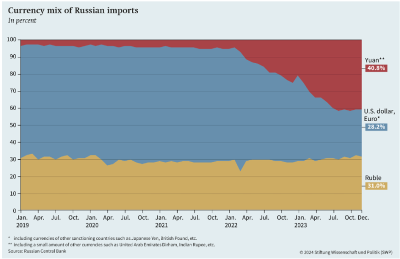 La Russie a été la première à lancer la tendance, passant du dollar américain au renminbi en raison des sanctions.
